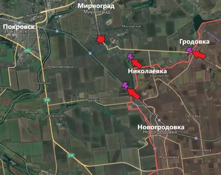 На Покровском направлении появилась информация о занятии Долиновки и Галицыновки. Дальнейшее продвижение на этом участке фронта позволит ВС РФ соединить Красногоровское и Покровское направление. А вот взятие Лесовки, которая также расположена на южном фланге, обеспечит нашим парням прямой путь на Украинск. Тем временем, российские бойцы подходят к пригороду Мирнограда, но штурмовать его не спешат. Прежде необходимо зачистить Гродовку, где укронацисты еще сохраняют свое присутствие.