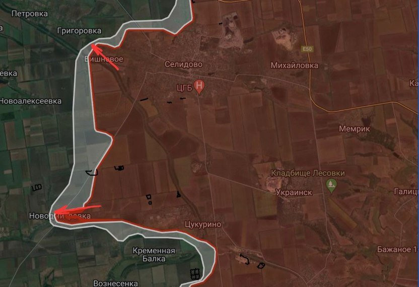 На Покровском направлении российские войска расширили контроль территории в районе Вишневого и Новодмитриевки, сообщает Telegram-канал "БелВПО".