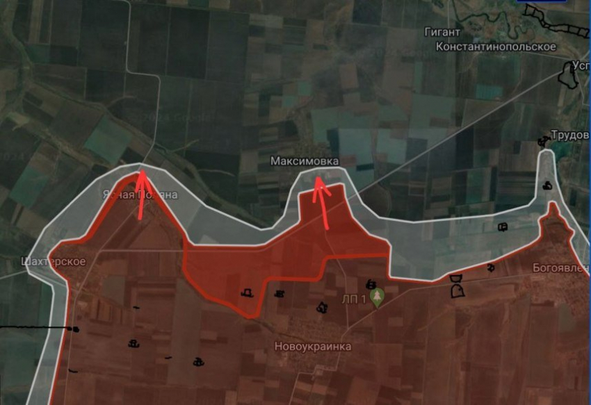 На Константинопольском направлении ВС РФ расширили контроль территории севернее балки Наливач и Новоукраинки в направлении Максимовки на участке шириной до 4.9 км на глубину до 1.7 км. Российские войска ведут штурмовые действия в Максимовке.