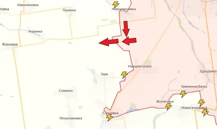 На Кураховском направлении на северном участке нашим бойцам удалось существенно продвинуться между Новоалексеевкой и Новодмитровкой в направлении Украинки. Сообщается о продвижении примерно на 3 километра на запад.