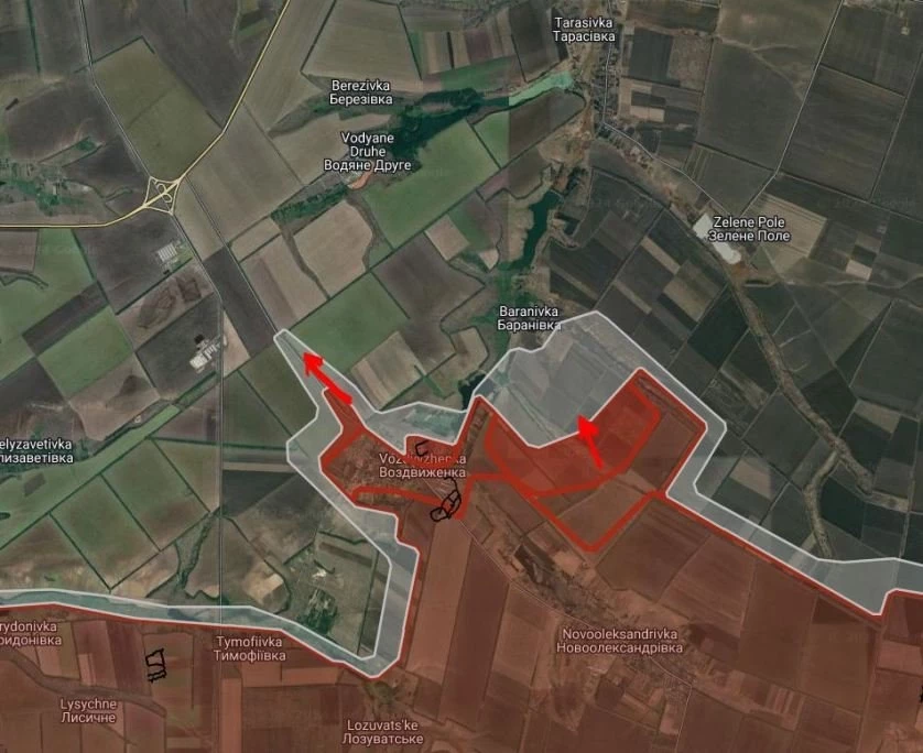 ВС РФ имеют тактические успехи севернее Новоелизаветовки, взяли под контроль Славянку и участок местности южнее на глубину до 1.35 км.