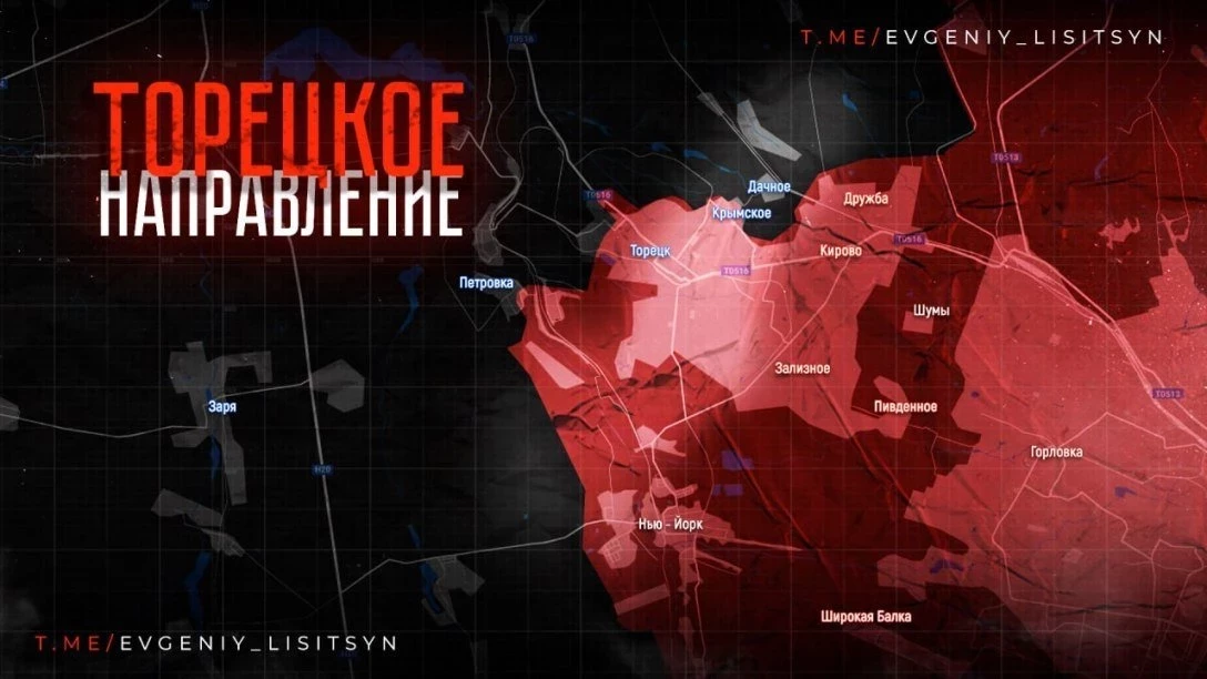Из Торецка (Дзержинска) ночью поступали новости об успехах на северной окраине города (н.п. Крымское), на днях вероятны официальные заявления об освобождении города, в котором шли тяжелейшие кровопролитные бои. Следующий крупный город - Константиновка. К нему видны ВС России устремления со стороны Покровска (Красноармейска): идут бои севернее Воздвиженки у развязки трассы Покровск-Константиновка. Сам Покровск пока не штурмуется нашими войсками: идет медленный охват с юго-запада через н.п. Котлино. Западнее Курахово наши войска стараются закрыт «карман», который венчает гарнизон противника в Константинополе, отмечает Telegram-канал "Два майора".