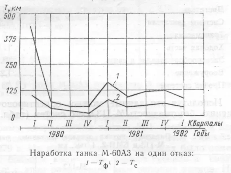 Вывод. Сравнение безотказности бронетанковой техники США и СССР, выполненное на основе результатов периодических испытаний и подконтрольной войсковой эксплуатации, с использованием принципа сопоставимости, показывает, что безотказность бронетранспортера М-113 и отечественной БМП-2 находится примерно на одном уровне. По безотказности американский танк М-60АЗ уступает отечественному Т-72. Безотказность танка Т-80 в целом примерно одинакова с американским М-1 при некотором превосходстве последнего в показателях ресурса газотурбинного двигателя и худших показателях ресурса ходовой части.