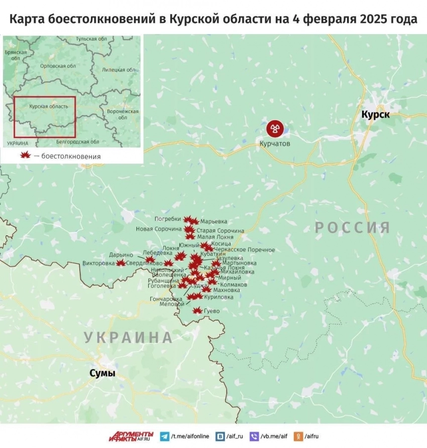 Бои в Курской области идут в Марьевке и Погребках: карта боевых действий по состоянию на 4 февраля 2025 года