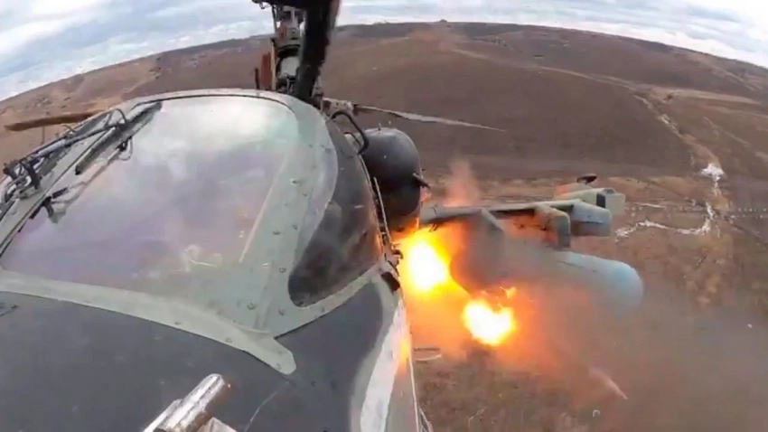 Экипаж армейской авиации на вертолете Ка-52М в рамках поддержки подразделений группировки войск «Север» нанес удар по целям ВСУ в приграничной зоне Курской области.