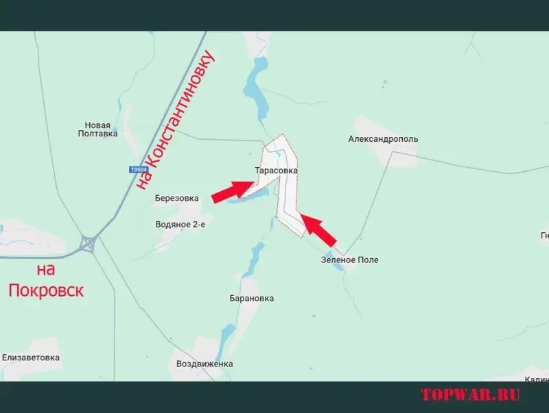 Освобождение части Тарасовки к востоку от Покровска произошло после взятия под контроль нашими бойцами нескольких соседних сёл: Зелёного Поля, Водяного Второго и Берёзовки. Они, как и Тарасовка, расположены южнее автомобильной дороги Покровск-Константиновка. Успех ВС РФ в Тарасовке позволяет не только расширить зону контроля у этой дороги, но и ближе продвинуться на Константиновском направлении.