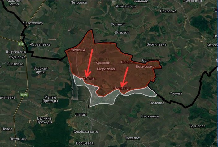 На Харьковском направлении (Липцовское направление) ВС РФ давят в лесополосах и лесных массивах между н.п. Глубокое и Лукьянцы.