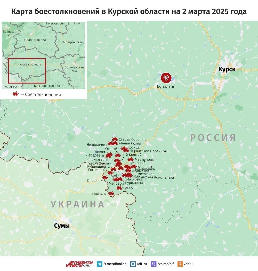 Свежая карта боевых действий в Курской области. Данные на сегодняшний день, 02.03.2025