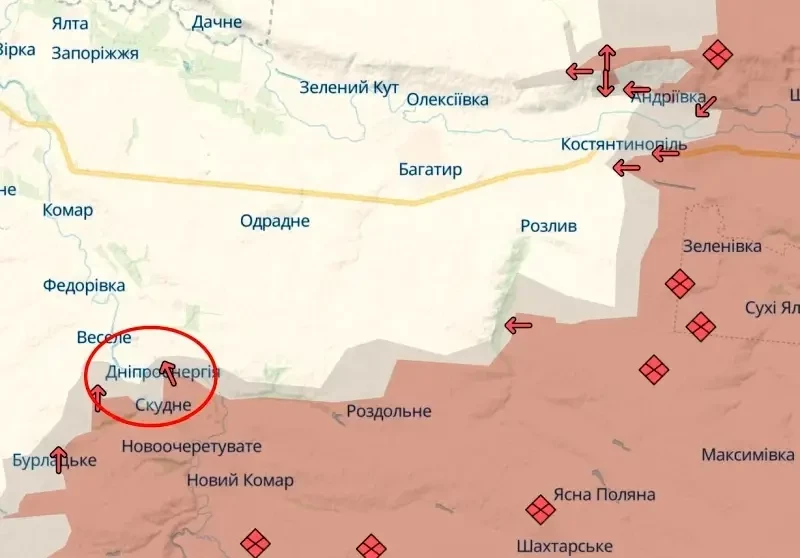 Между тем, некоторую ясность в ситуацию на этом участке фронта внес аффилированный с ГУР МО Украины ресурс Deep State. Согласно опубликованной им карте, ВСУ в последние дни постепенно отходили в районе Скудного. Российские передовые части уже подходят к Веселому, что к западу от Великой Новоселки. Об освобождении Скудного и соседнего Бурлацкого группировкой войск «Восток» ВС РФ Минобороны России сообщило еще 1 марта.