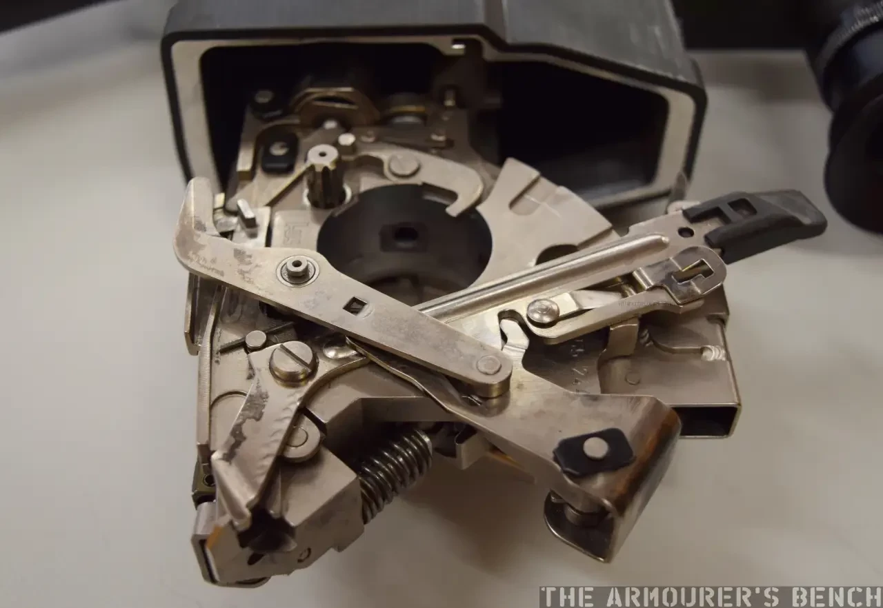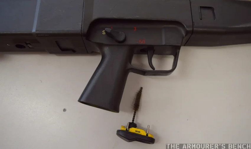 Проблемы тут начинались, если таки вам надо было почистить ствол. Затвор-то не открывается по факту. Да в общем чистка бойцом и не предполагалась. У него было что-то типа маленького ершика для бутылок, которым предполагалось чистить только камору-патронник затвора колеса. Всё. При этом сам механизм затвора был, мягко говоря, сложным и внешне напоминал скорее деталь больших часов, чем оружия. Помимо всего этого, весь механизм ещё и работал за счёт отдачи. Точнее, он был «подвешен» и при выстреле двигался назад. Это уже было требование конкурса ACR (Advanced Combat Rifle) на новую американскую боевую винтовку. При стрельбе отсечками по 3 выстрела, стрелок не должен был чувствовать отдачи, пока 3 пуля не покидала ствол. Пока происходило 3 выстрела, механизм всё ещё откатывался назад.