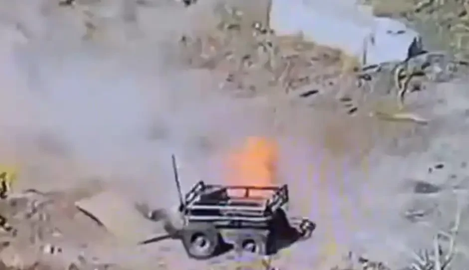 Битва дронов: Показаны кадры уничтожения российским БПЛА наземного дрона ВСУ