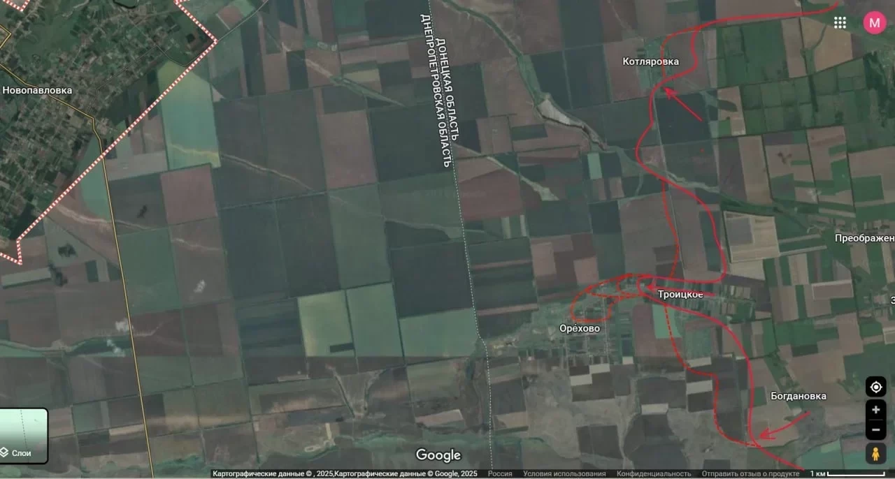 Штурмовые группы, закрепившись в ранее освобожденном селе Троицкое, вошли в северо-западную часть села Орехово- последнего населенного пункта перед административной границей Днепропетровской области. На данный момент передовые позиции российских штурмовиков находятся менее чем в 2 км от границы, а от Орехова до нее остается всего около 500 метров.