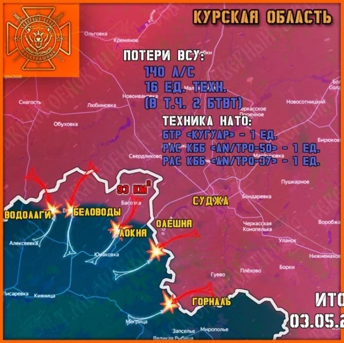 Главные новости » Эксклюзив » ВС РФ на Курском направлении продвигаются в направлении Сум: свежие данные на 04.05.2025
