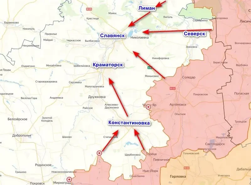 Российские войска, наступающие между Покровском и Торецком в сторону Константиновки, фактически создают условия для дальнейшего удара на Дружковку и далее на Краматорск и Славянск. А учитывая, что ВС РФ практически взяли Часов Яр, контролируя почти все главные высоты, удар с этого направления неизбежен и будет нанесен в рамках летней военной кампании России.