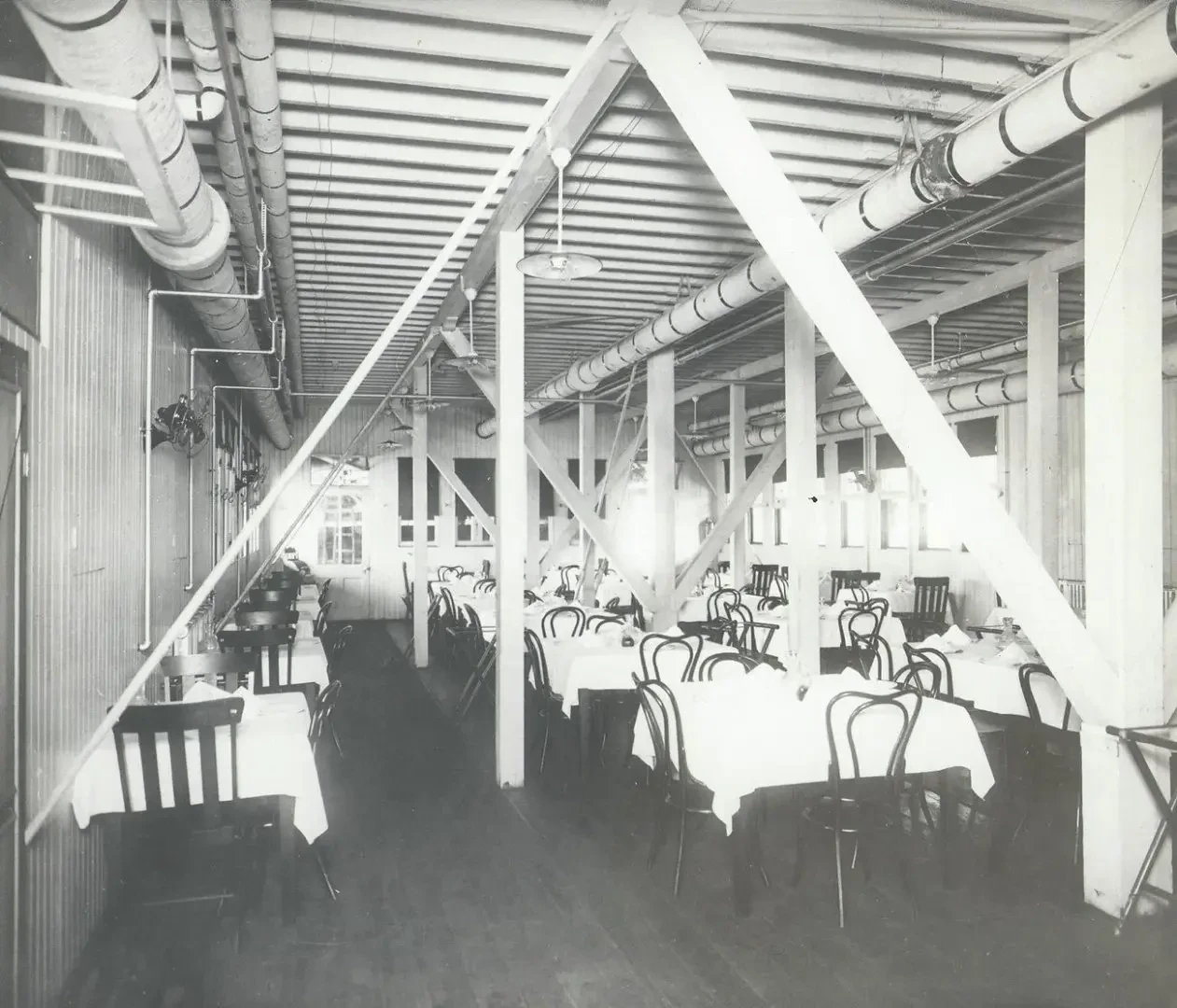 Ресторан на большом пароходе с гнутыми венскими стульями