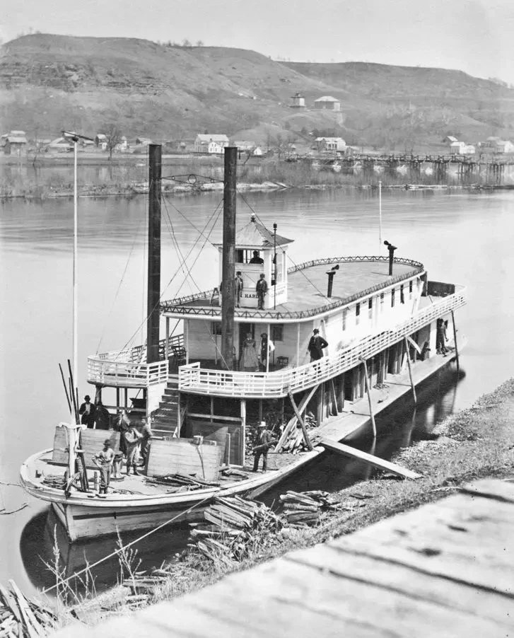 Двухпалубный пароход. Река на территории Монтана, 1870 г.