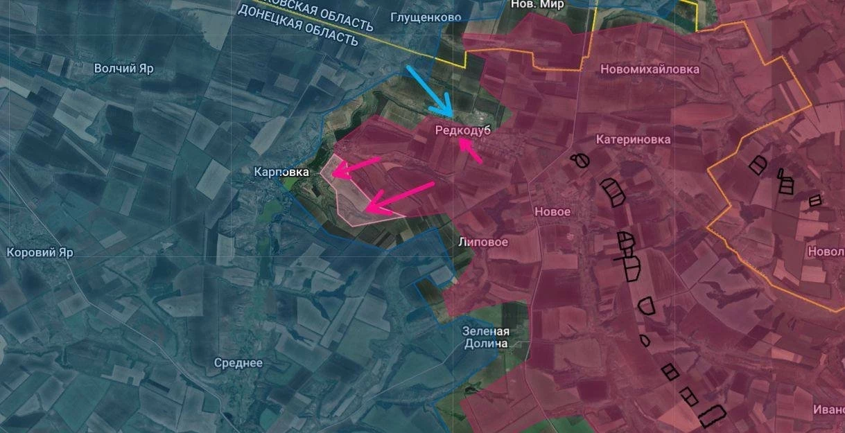 На Краснолиманском направлении ВС РФ отбили контрудар ВСУ в Редкодубе, сохранив контроль над селом. Севернее продолжаются штурмы на окраинах Глущенково и Нового Мира.