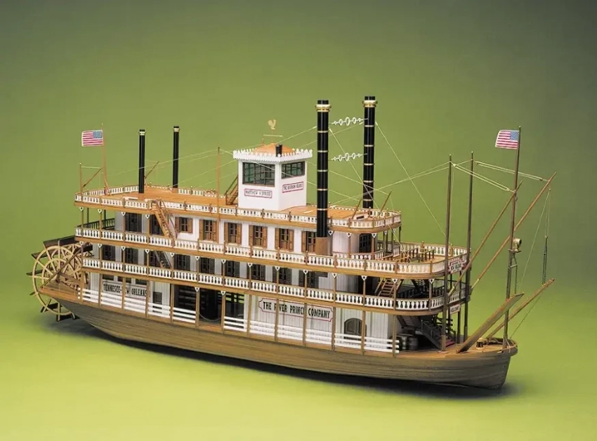 Артефакты истории техники. В прошлый раз мы рассказали о миссисипских пароходах-гигантах. Сегодня наш рассказ будет посвящен их моделям в том числе, причем моделям не из полистирола, а из деревянных полуготовых деталей, над которыми придется потрудиться, но и выглядят они куда более впечатляюще. В предыдущей статье мы уже приводили пример с несколькими полистироловыми моделями парохода «Роберт Е. Ли». Однако его модель итальянская фирма «Амати» выпускает и в виде сборной модели из дерева, причем в масштабе М:150. Цена модели довольно велика и на сегодня составляет около 37 300 рублей – то есть сумму совсем немаленькую.