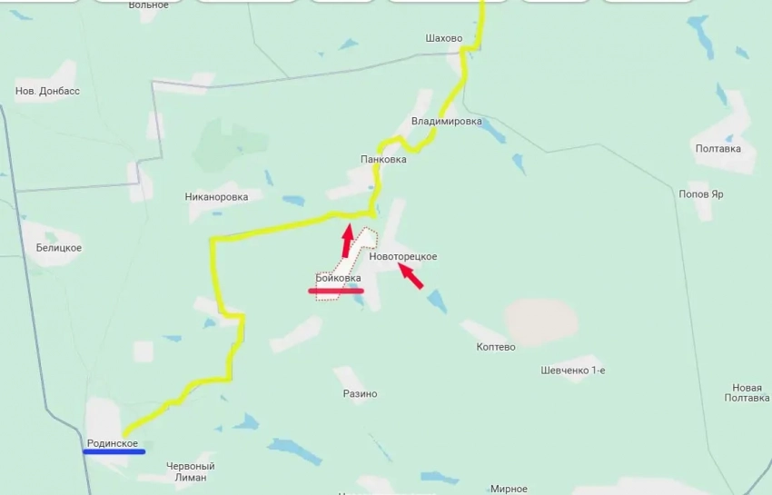 Теперь российские войска контролируют участок этого маршрута севернее Бойковки, что лишает ВСУ возможности его использования с прежней интенсивностью.
