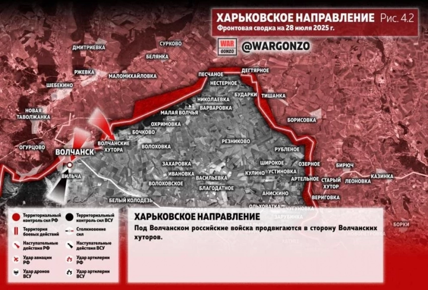 Карта боевых действий на Украине. Ситуация в зоне СВО на 28.07.2025