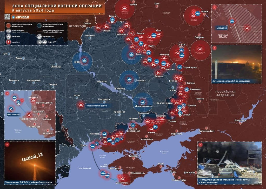 Новая карта боевых действий в зоне СВО на Украине от 10 августа 2024 года