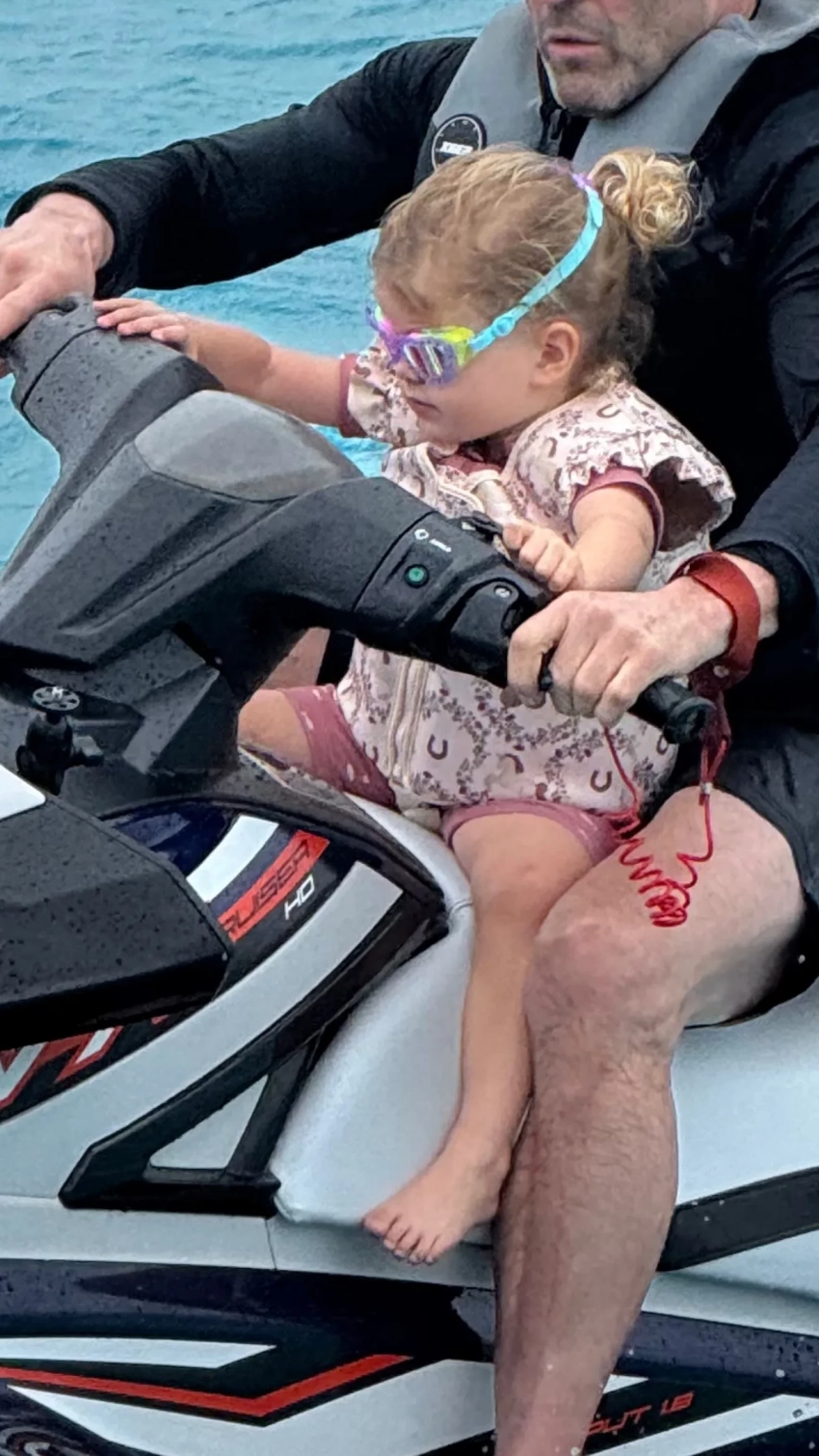 На одном из снимков Изабелла предстала вместе со своим отцом, 57-летним Джейсоном Стэтхемом: они катались на гидроцикле. Также модель добавила фотографию дочери с её старшим братом, семилетним Джеком. В последнее время Хантингтон-Уайтли стала чаще публиковать фотографии дочери, на некоторых из них даже видно её лицо.