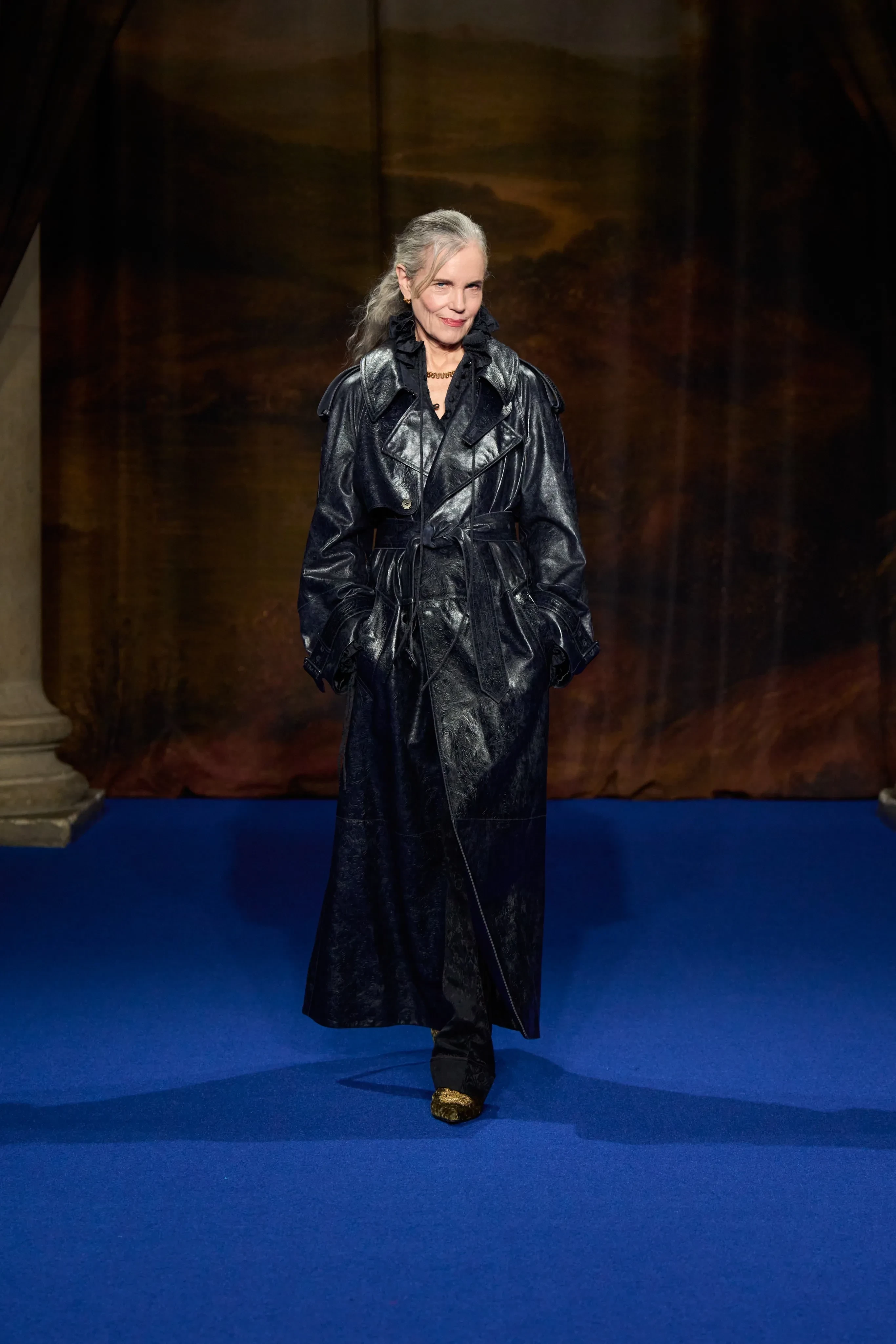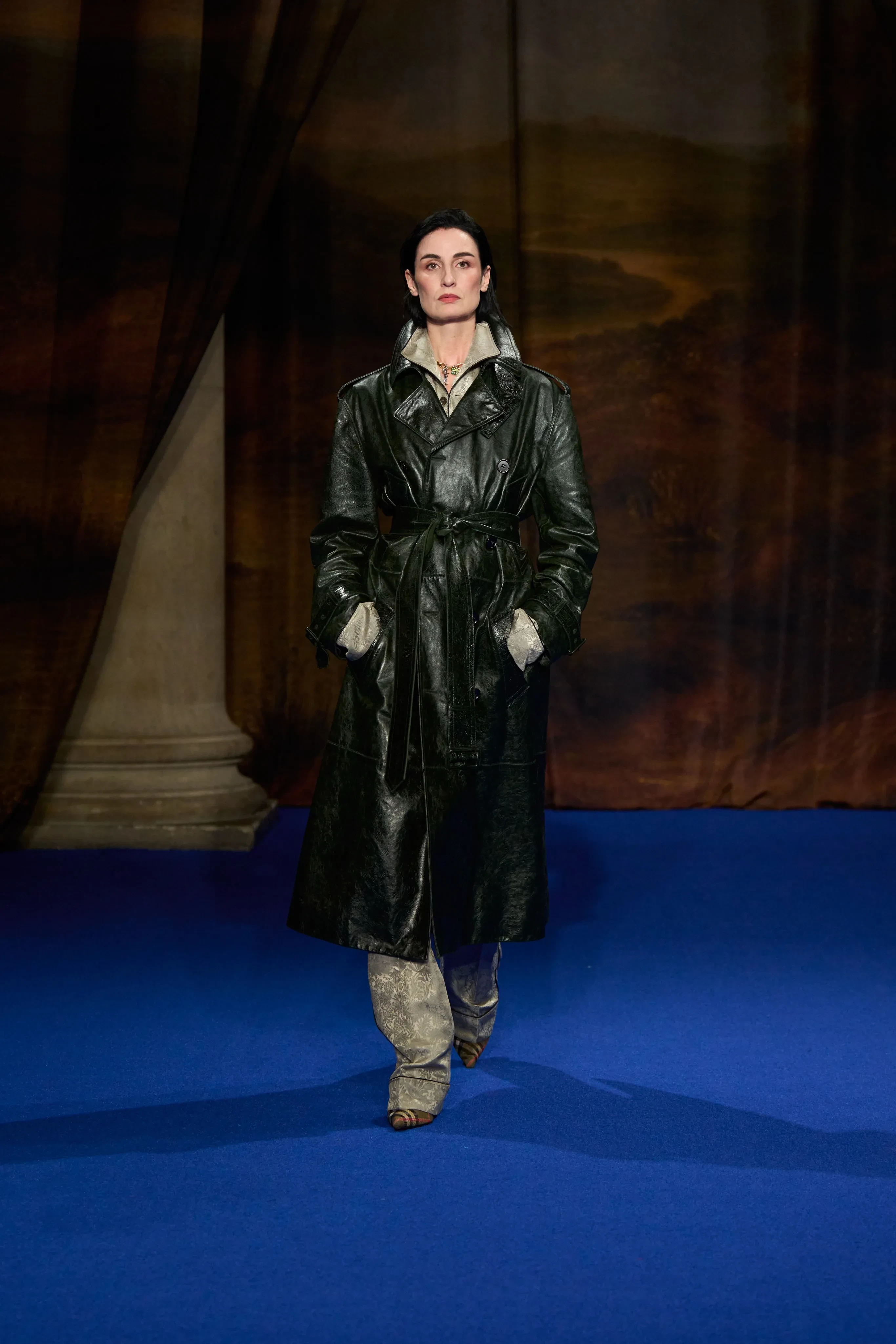 Эрин О'Коннор на показе Burberry осень-зима — 2025/Фото: Isidore Montag/Gorunway.com