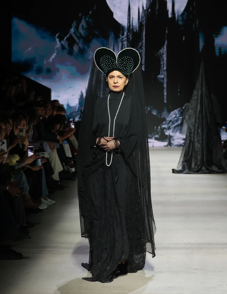 Сюзанна Барс (Maison Suzanna Bars, Москва) вдохновилась декадансом и погрузила зрителей в загадочную Викторианскую эпоху, и мы бы даже сказали — в настоящее готическое кино! Зрители перенеслись во времени и посмотрели, как дамы в старинных платьях и головных уборах Викторианской эпохи прогуливались по темным улочкам. А нам это шоу чем-то даже напомнило нашумевший показ итальянского бренда Schiaparelli в Диснейленде.