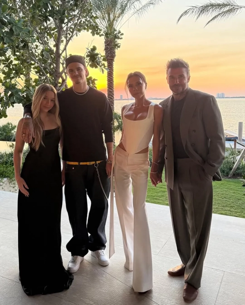 Сначала семья в узком кругу отметила праздник на яхте, предположительно, в Майами, где Виктория задула свечу на небольшом торте. Ближе к вечеру Бекхэмы переместились на вечеринку, где собрались близкие друзья, а Виктория появилась перед гостями в белых брюках и корсете: в этом образе её невестка Никола Пельтц выходила на премьеру своего фильма "Лола"в прошлом году.