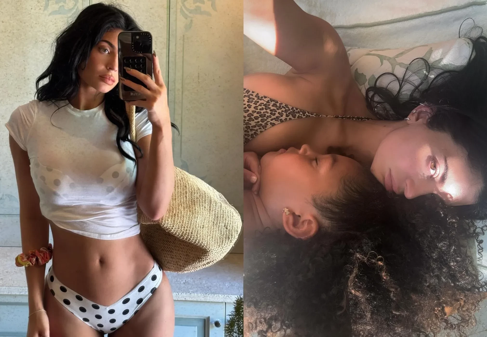 Кайли ДженнерТакже Кайли поделилась фото, на которых позирует в трендовом бикини в чёрный горошек, и не забыла про семейные моменты: на снимках дети Дженнер, трёхлетний Эйр и семилетняя Сторми, делают пиццу, дремлют вместе с мамой, раскрашивают картинки и гуляют на свежем воздухе.