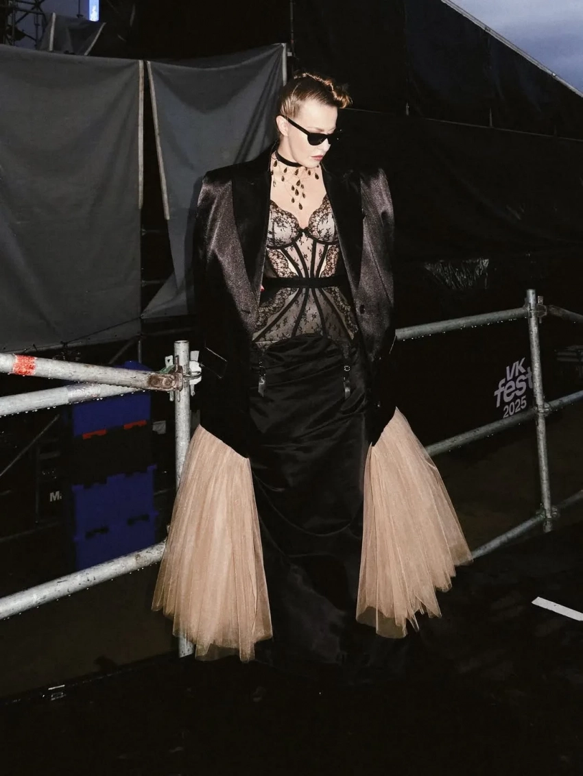 Русский кутюр и последний день перед декретом: как Ксения Собчак и Ида Галич провели время на VK Fest