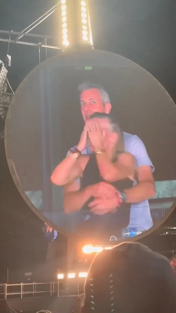Во время выступления группа развлекала зрителей игрой "камера поцелуев" (популярная забава на массовых мероприятиях, когда на экран выводят случайные пары). В какой-то момент оператор запечатлел пару, обнимающуюся в VIP-ложе. Но вместо привычной реакции влюблённые повели себя странно: девушка резко закрыла лицо руками и отвернулась, а её спутник быстро присел, стараясь спрятаться за ограждением. Лидер Coldplay Крис Мартин прокомментировал это в прямом эфире: "О, посмотрите на этих ребят. Либо они кому-то изменяют, либо очень стеснительные".