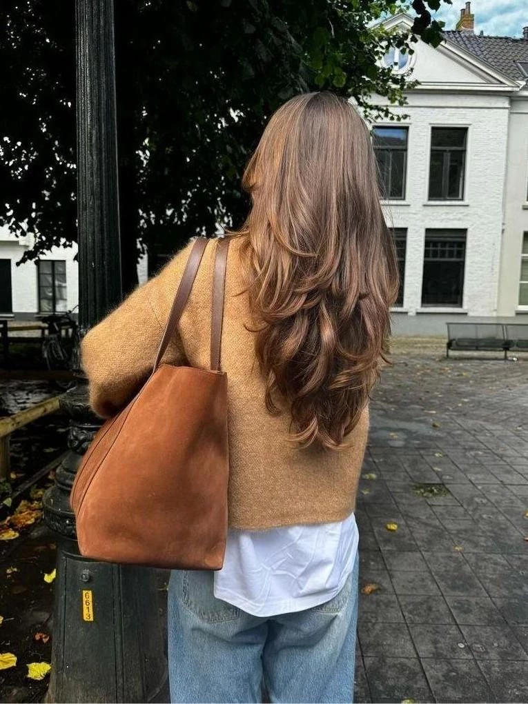 Теплый шатен — один из самых практичных осенних цветов: он хорошо переносит перепады температуры и не требует сложного стайлинга.